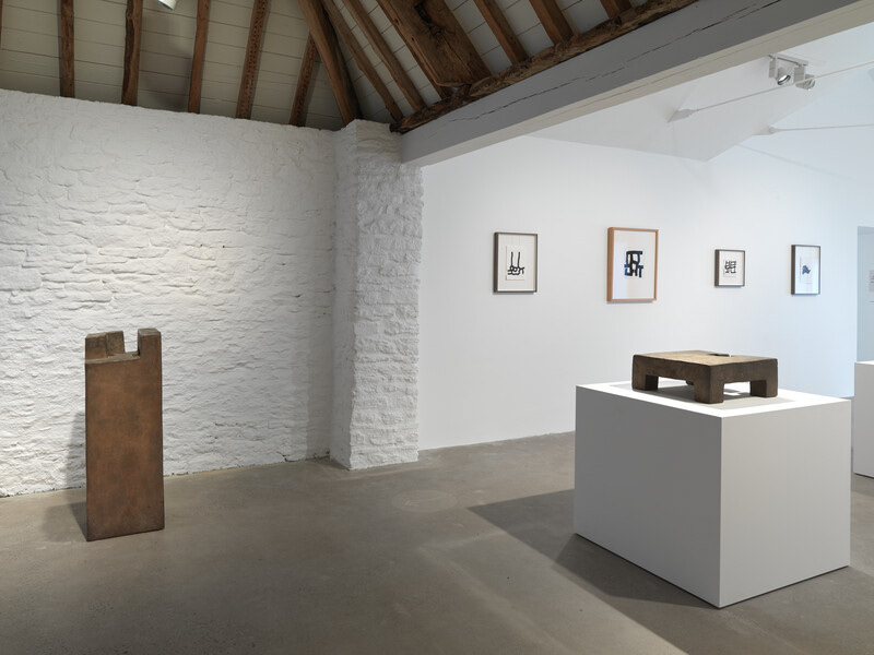 From June 2021 to January 2022 Hauser and Wirth Somerset presented a significant body of sculptural works and drawings displayed throughout the original farm buildings and surrounding outdoor landscape in Somerset. The exhibition invited new encounters between Chillida’s work and the unique environment of Hauser & Wirth Somerset, drawing parallels with the artist’s own vision for Chillida Leku, a public museum and sculpture park created during his lifetime that expanded the relationship between art and nature. Large and medium-sized sculptures of granite, chamotte clay and iron, were presented throughout the Threshing Barn, Pigsty and Workshop galleries. The sculptural works were complemented by a selection of paper works, including suspended Gravitations and figurative drawings verging on abstraction.